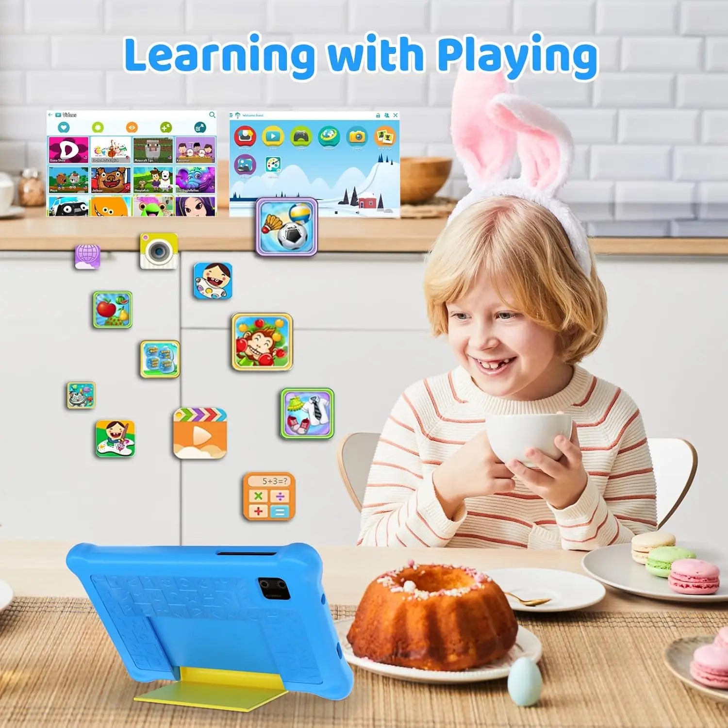 【HD Screen with Eye Protection】Parents always worry that their child's eyes will be damaged. Don't worry! Our kids tablet comes with a 1024x600 HD screen, designed with low blue light technology to minimize children's eyes.