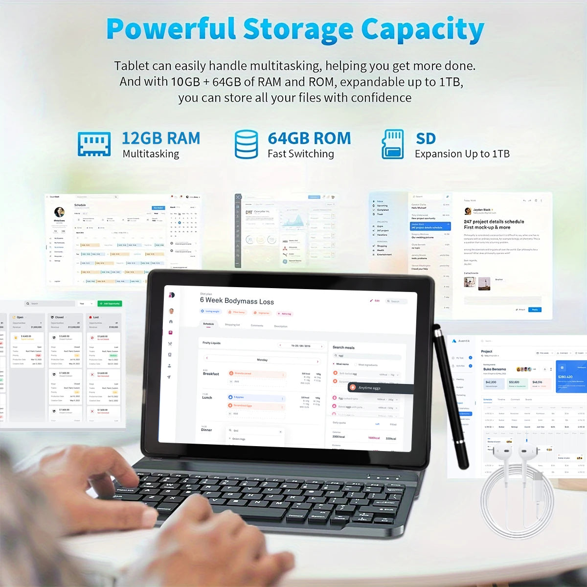 Octa-Core Processor and Large Memory: Equipped with an octa-core processor, along with 12GB of RAM and 64GB of ROM, it can quickly launch applications and enable seamless multitasking. Whether running large-scale games, watching high-definition videos or opening multiple office software simultaneously, it ensures a smooth user experience, allowing users to operate efficiently.