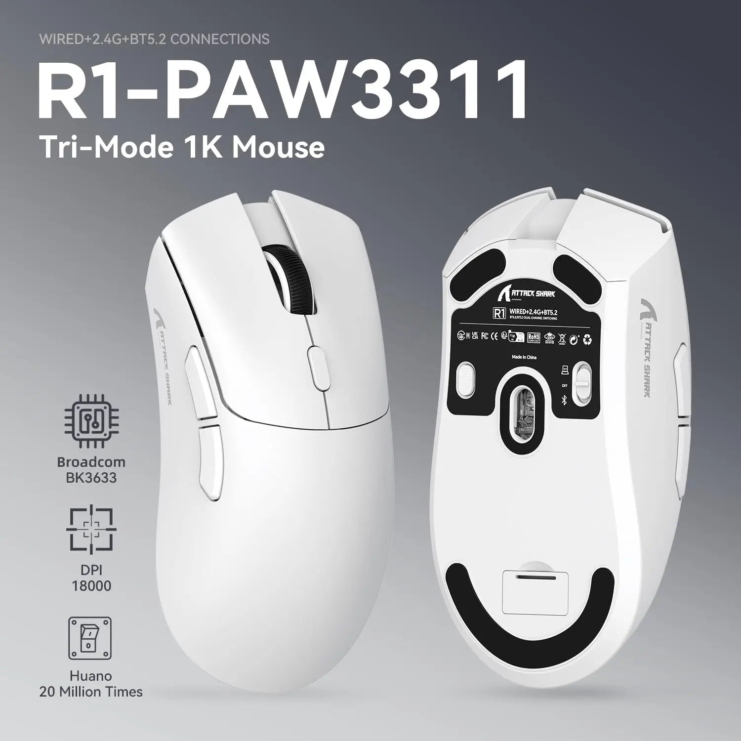 The Attack Shark R1 Wireless Gaming Mouse is a lightweight, high-performance peripheral designed for gamers and professionals seeking versatility and precision. With its tri-mode connectivity, advanced optical sensor, and durable switches, it offers a comprehensive solution for various computing needs.