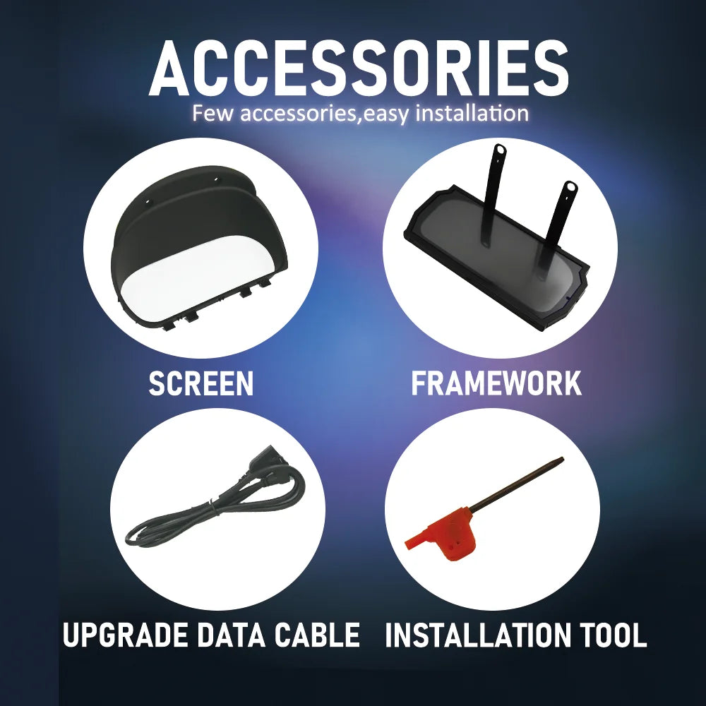 Display size & resolution | ~12.3‑inch IPS LCD / HD screen with resolution 1920 × 720 pixels. Ensures sharp, “wide bar” appearance that spans similar width to original analogue cluster. |