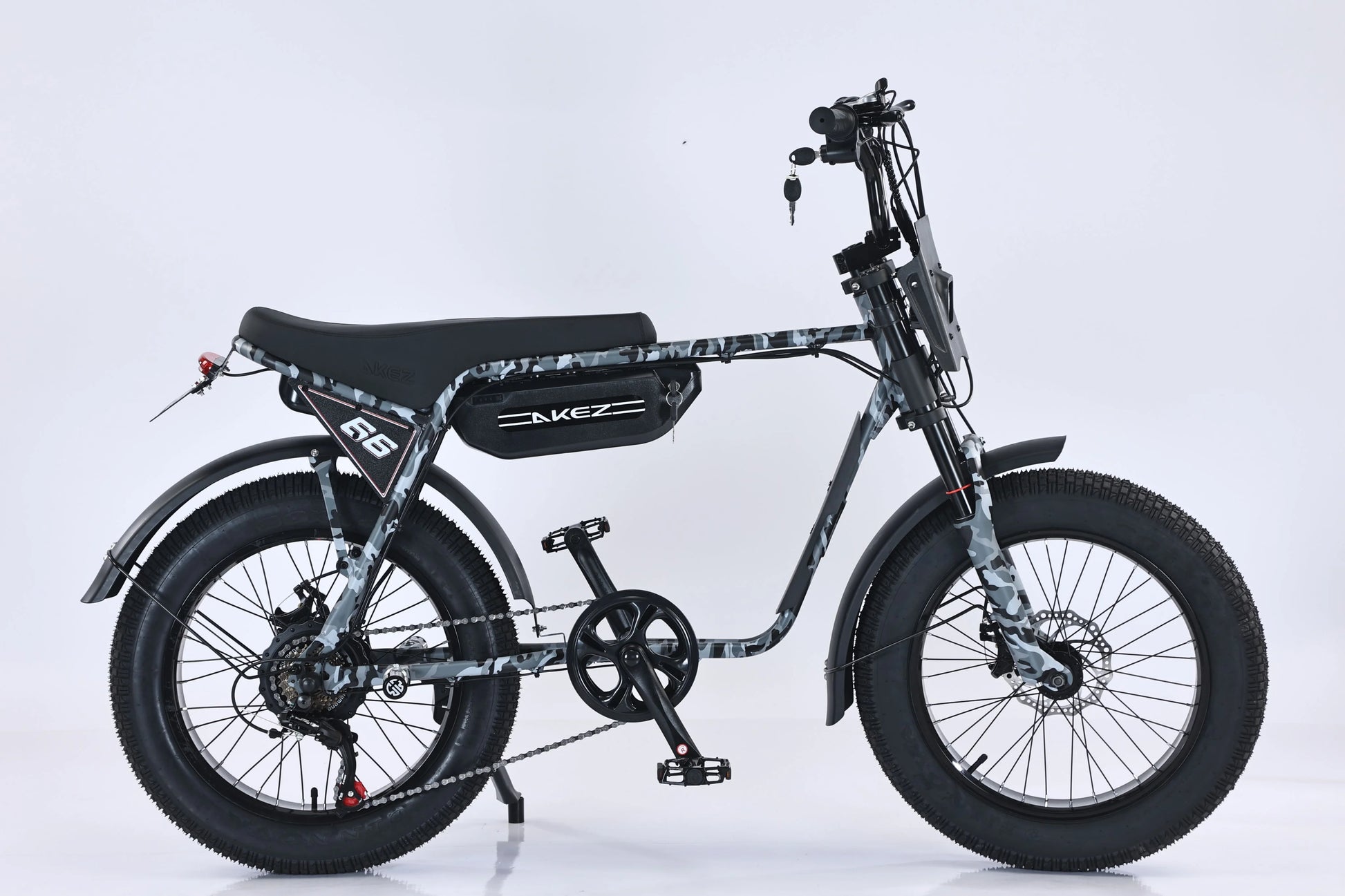 The AKEZ-ZX E-Bike is a rugged, high-performance electric mountain bike engineered for power, endurance, and off-road versatility. With a 750W high-speed brushless motor, 48V 13AH lithium battery, and 20-inch fat tires, this model is built to conquer a wide range of terrains—from steep hills to snow, sand, and gravel. Premium features like hydraulic disc brakes, a full-color hydraulic display, and a sturdy frame make it ideal for both commuting and trail-blazing adventures.