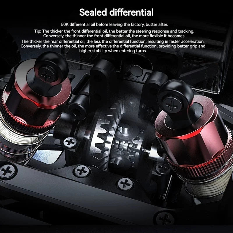 Drive / Chassis | 4WD, metal parts, reinforced ABS / metal chassis & components | Many versions include metal differentials, full ball bearings, oil‑filled shocks |