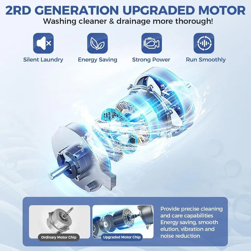 - [Extremely Energy Saving]--This laundry washer is equipped with high-quality motor that delivers stable power output. Compared to similar models, this small washing machine saves up to 85% in energy consumption, resulting in significant cost savings for your household. It's thoughtful sound insulation design guarantees minimal noise during operation, creating a tranquil washing environment, improve your quality of life